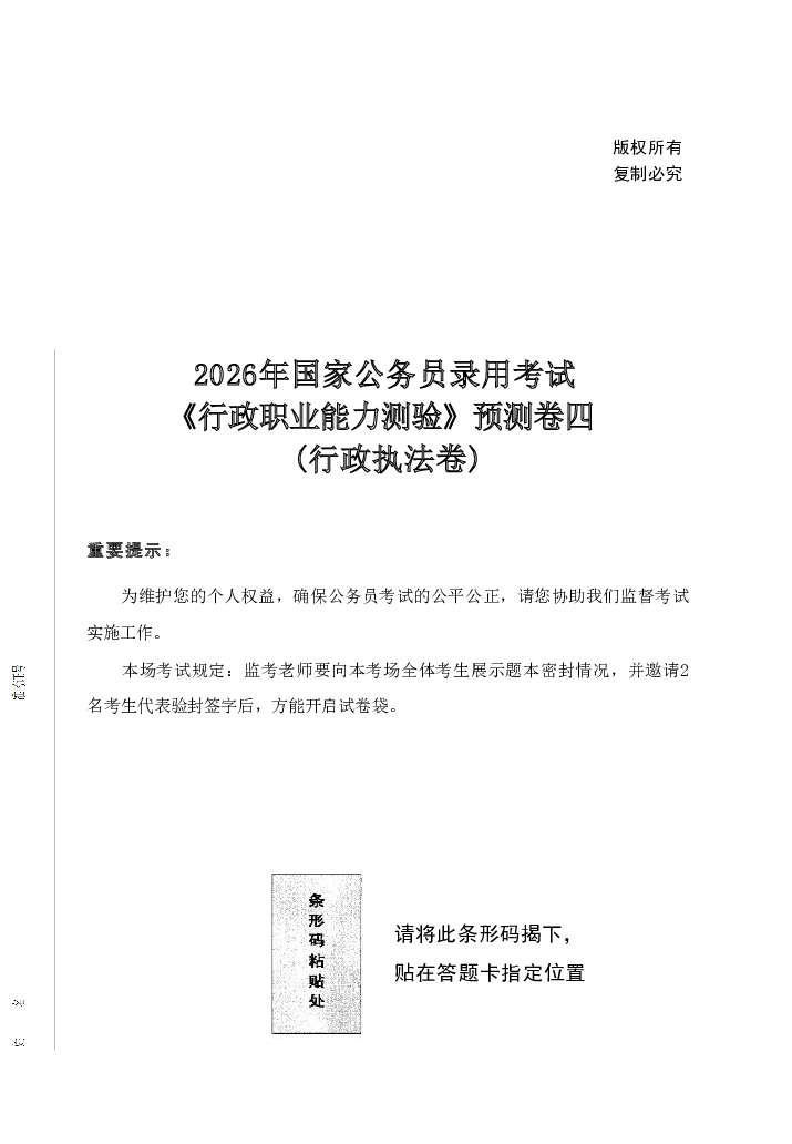 2026年国家公务员录用考试《行政职业能力测验》预测卷四(行政执法卷)