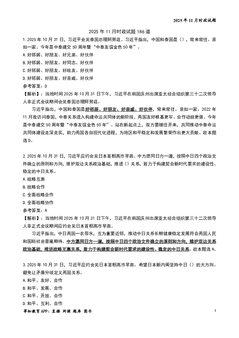 2025年11月时政试题