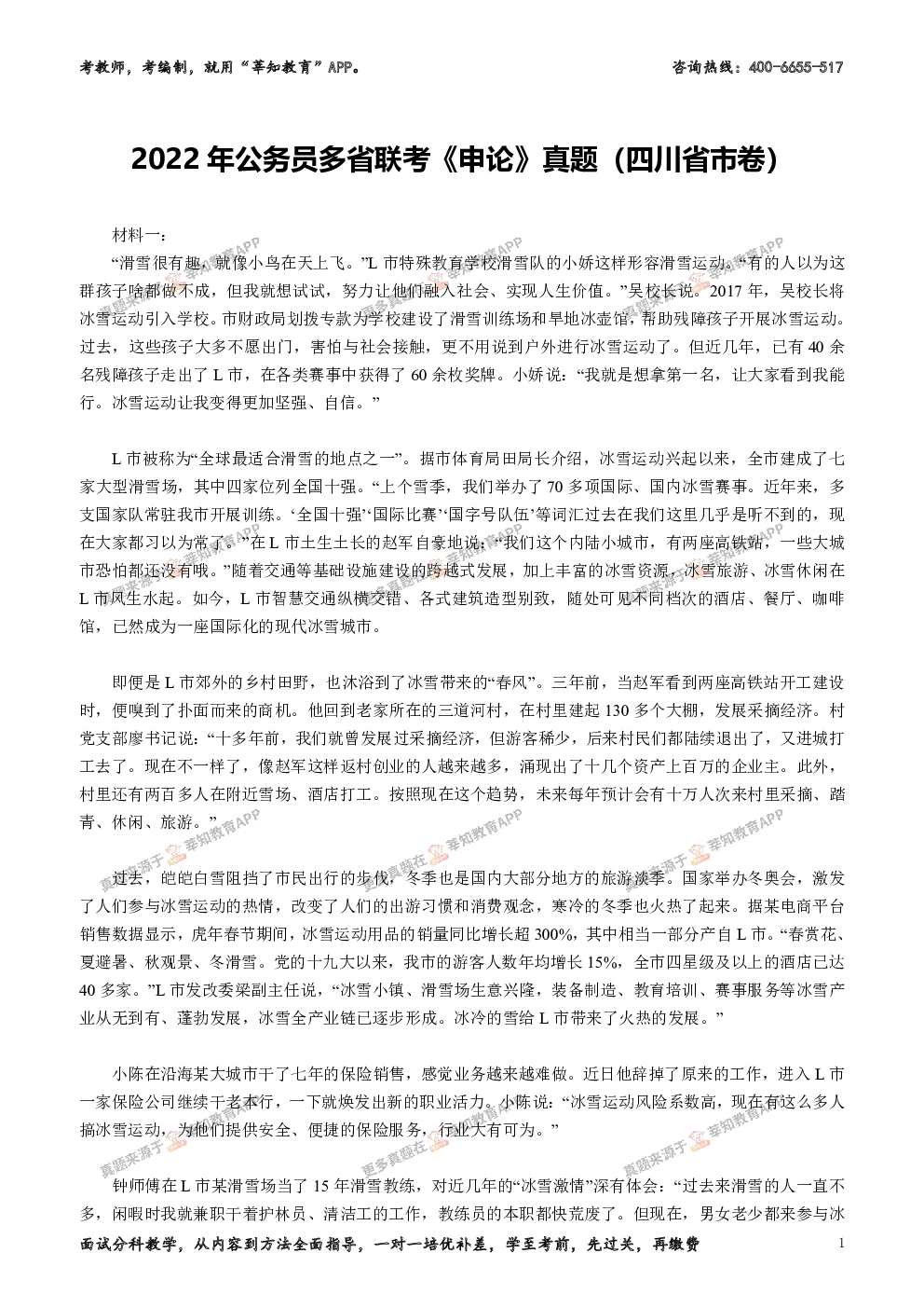 2022年公务员多省联考《申论》真题(四川省市卷)