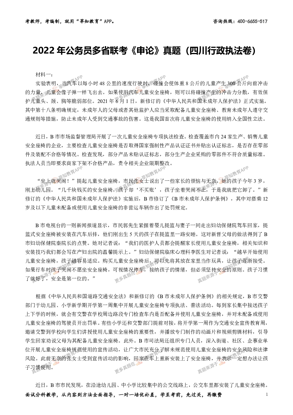 2022年公务员多省联考《申论》真题(四川行政执法卷)